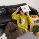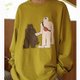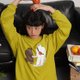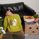 - odd maker 剪刀石头布芥末绿卡通原创套头纯棉宽松复古潮男女长袖