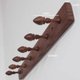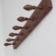 因为对木旋的痴迷,就想把它运用到各种生活器物和家具的设计中,但是又不想太繁复,所以设计上一直都是在克制。做了很多个挂钩的木旋造型,选择了这个像小毛桃,又像橡果的可爱挂钩,背板的设计上我们最终放弃了繁复的波浪边造型,采用了简单直线的造型,来衬托挂钩的独特和精致,最终出来的效果就是我们心中想要的。