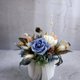大理石纹花器配上灰蓝色玫瑰,为了不要太灰暗,加上白色牡丹提高了些亮度,稳重而沉静,很适合居家布置、乔迁贺礼、开幕礼