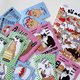 动物们生活化的可爱插图,材质是铜板贴纸上亮膜,大大小小的图案,每一幅都像袖珍的画,适合贴在手帐上装饰,或是用来包装当封口贴