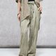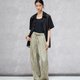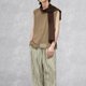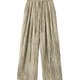【犬青】植物染做旧/破坏阔腿/条纹长裤 - 女装长裤 - 棉.麻 卡其色