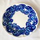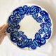 纯白色底座上有亮蓝色阿拉伯式花纹图案。我用地中海的图像画了它。