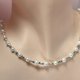 直径4.5-5.0mm的天然淡水珍珠呈现出强光炫彩的正白色,颗颗珍珠有强光炫彩,纱织小姐将其整体间隔排列成一线并以S925银切花隔珠间隔排列呈现出微波般的色彩层次感。纱织小姐为其配以银色延长链龙虾搭扣,形成总长约50+4cm的华丽轻奢款项链毛衣链。你可以一边摇曳生姿,一边简约美好,可以点亮你的所有简单衣裳。美好的天然淡水珍珠表面呈现出难以名状的炫彩色调,自然光下每一颗都分别呈现出各自的七彩光芒炫彩,似镜面可照出人影,可与天然海水珠媲美,美得不可方物。