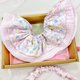 双层设计的围兜甜美可人,搭配双色造型蝴蝶结发带,超级可爱吸睛! 可选择礼盒装(含手写祝贺小卡)