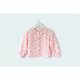 棉质衬衫,粉红、白圆点、红花痴图案。