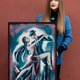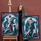他们的目光交汇在一起,这一刻诞生的不仅仅是一支舞蹈,更是一个关于爱、激情和理解的故事。画作的冷暖色调和谐交织,为任何室内装饰(从舒适的家居到现代的办公室)营造出理想的背景。
