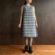 此为无袖A字裙摆、及膝长度(模特儿身高157厘米)的连身洋装。领口前后皆为船型领。后方单颗钮扣设计,方便穿脱。内衬为银色全衬里。