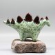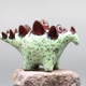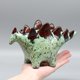 每件作品皆由黏土手工塑形、窑烧并手工上釉。这只恐龙是原创艺术过程的结晶,因此没有两件是完全相同的。其表面呈现薄荷绿与深红色釉料的美丽组合,带有斑驳的纹理,赋予其独特的个性和深度。