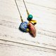 自由国度 不同的矿石(青金石 碧玺 虎眼石 凤凰石)加上铜珠 利用不锈钢链串起 成为一条独具特色的长项链 链长32寸 约80厘米