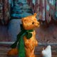 - This is Mr. Little Fox. He is created with vintage plush, stuffed with wood shavings (body and paws) and holofiber (tail). Glass eyes, embroidered nose, mustache, gorgeous tail! :) Little Fox is cunning, but very friendly! Mr. Little Fox can stay by himself and he is sporting a stylish silk ribbon around the neck. Bracing - 5 splints. Height - 6 inches with