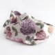 - A hair band made from a beautiful Liberty fabric with an adult-like mauve hydrangea pattern.