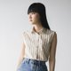 - Yellow stripe women sleeveless shirt with ship origami embroidery