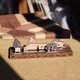 ▾ 扭蛋内含微型木雕8个与列车底座1个,微型木雕包含太平山蹦蹦车组3个、土场火车站牌、肖楠2组、赤杨2组。