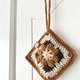 <编织花朵耳机包。咖啡色拼驼色>