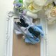 装饰使用两色花边织带做拼接、折成自行发想的蝴蝶结。