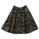 过膝的裙长复古优雅,日制虎斑迷彩布料扎实而不死硬,结实兼具柔软,轻松穿搭带有男孩子气亦不失甜美。