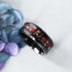 戒指面宽8mm,戒圈有黑、银、蓝、金四色可选,男女皆宜。