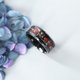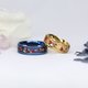 戒圈中间装饰的是干燥花和金箔,用树脂封层。