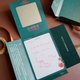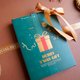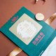 解开附送的丝带, 撕去盒上的包装, 再撕去卡上的包装,