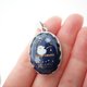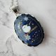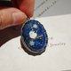 这款吊坠结合了以其美丽深邃蓝色为特色的天然石材青金石,以及可爱的白眉林莺和闪耀的金箔。青金石的蓝色令人联想到夜空,与白眉林莺柔和的氛围和金箔的闪烁交织出优雅的和谐。
