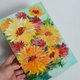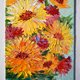 原创油画、黄花油画、原创小幅面油画、向日葵油画、现代艺术、现代油画、小画 面板上的油画。 29x20 厘米。厚涂画 这位艺术家在 The Artling, Tricera 画廊都有代表。