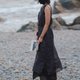 細巧的肩帶恰好落在鎖骨最漂亮的弧度上。