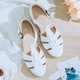 费工又耗时的编织鱼骨鞋,鞋头到脚背由密而疏的编织,把宽脚的地方隐藏的很好。