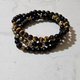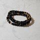 (3圈)黄虎眼石X黑火山岩X黑玛瑙X黄铁矿X黄铜X纯银镀24K金链1条