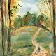 - 《秋林漫步》以温暖水彩描绘秋日山林小径,独行者漫步于落叶纷飞的山间小路,远处木屋宁静伫立。画面运用丰富的秋色渐层,展现秋天特有的诗意与温度。适合咖啡厅、民宿、居家空间,为生活注入一份宁静温暖的秋日氛围。
