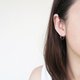 将耳针开口,以错开的方式,轻扳错开穿过耳洞,确定正确位子后再反方向扳回,末端对齐,呈现O造型即完成。