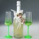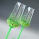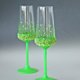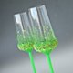 Set of 2 Neon party champagne or white wine glasses, hand painted and decorated. One of a kind glasses and READY to SHIP! Neon green stems and base, small plastic leaves in neon green-yellow, mini beads, green crystal rhinestones. Very attractive and unconventional glasses, which will make your festive table very special.