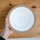 盘子的边缘故意不上釉,这样就可以看到和感受到粘土的温度和小石原的传统技术 "跳坎"。