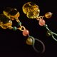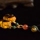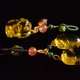 搭配南红玛瑙樱桃红圆珠,搭配翡翠油青圆珠,搭配琥珀原石随形珠子,质感相互衬托,手工绕线连接,增加吊饰的灵动感,也使整体更为精致耐看!