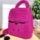 Beautiful and elegant backpack crocheted by hand from T-shirt yarn.