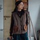 礦土色 復古拼色粗花呢羊毛馬甲馬夾
