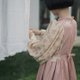 小花花撞色+燈籠袖拼接,凸顯少女的可愛