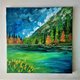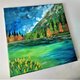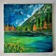 - A beautiful painting with a textural image of a mountain landscape and a forest. This landscape looks very beautiful in the interior. A picture of a forest, mountains and a lake will undoubtedly decorate your room. This painting can be placed in the bedroom, living room, hallway. It will bring you good luck! Ready to visit your wall.