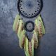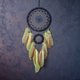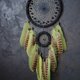 This natural graphite grey with green dream catcher is the gift you are looking for! It’s made of wooden hoops wrapped with yarn,beads, and feathers.