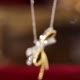 18K金钻石蝴蝶结项链,钻石项链,双色K金钻石项链