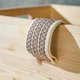 本商品以早期织纹为设计主轴,运用平织、斜纹织、浮织及挑织等技法,透过各种色彩的线材织成各式图腾—表达庇佑的祖灵之眼、丰收、山水及彩虹桥等文化意涵,结合现代素材、透过创新设计,创造时尚及文化意涵兼具之潮流作品,将先人的智慧保存及流传。
