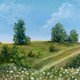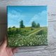 原创山水画布 尺寸为 6 x 6 英寸 (15 х 15 см) 绿色风景画是艺术家A Yakunaite于2024年创作的 材质:油画、拉伸帆布 同类艺术品之一 正面和背面均有艺术家签名 准备出货