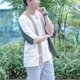 手摇线独特的多色线条结合,在梭织后成混色绵布,配合拼布设计,疏松的织法使棉质外套在夏天穿着也分外通爽。