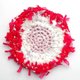 仿花卉造型的手作编织杯垫,直径约 8.5cm。