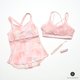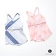 网纱与春夏甜美花布的拼接,制造假两件效果;背部交叉设计强化美背,并在侧边及背后加宽设计,更加完整托覆胸部及肌肉,使运动时能更加稳定。