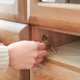 有着双开门非常显眼的书柜,在下层有设置两种不同高度的抽屉。小物或是放不进书柜里的东西都能派上用场。另外上层的左边抽屉可以上锁。将旁边的抽屉拉出后才能看到锁头,因此不知道的人一定找不到。像是日记或笔记本不希望被看到的重要物品都能收藏进去。