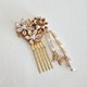 梳子上装饰着三朵小花,并悬挂着一只蝴蝶饰物。