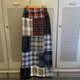 此为一件式的改造商品,将二手格纹衬衫拆解后拼接而成。