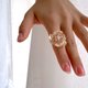 -**建议搭配**:淡色系洋装突显戒指的细节可以增添整体造型的精致感;搭配简单的白T加短裤就有日常的感觉,我特别喜欢全身穿得很帅西装外套西装短裙再搭一个这样girly一点的戒指,超级好看
