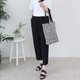 黑白字母图案织物搭配黑色肩带,简约中带有独特个性。