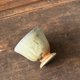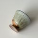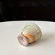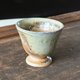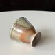 这只未施釉的小杯,置于柴窑窑头前沿,在高温中,坯体与落灰所含的矿物元素相互共溶,于无意之间生成一层青绿色的自然釉面,与橘色火痕形成清丽的画面。